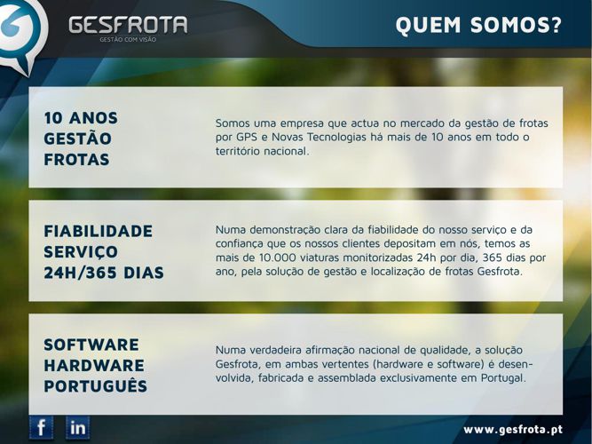Somos uma Empresa na área de produtos tecnológicos. Há meses Seja um dos 30 . GesFrota – localizadores de viaturas GPS – para clientes particulares e ou empresas. Permite Gerir Toda a frota da empresa criando uma base de dados, que.